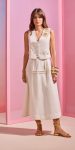 Vestido em tecido leve com busto texturizado. Exibe alças finas com ajuste, barbatana de sustentação no busto, recorte na cintura, saia de modelagem godê com barra de lenço e fechamento por amarração e zíper invisível atrás.O tom neutro permite misturar e combinar com diversos acessórios e outras peças do seu guarda-roupa, trazendo versatilidade ao seu visual. Use com saltos e uma bolsa pequena para uma dose extra de sofisticação!