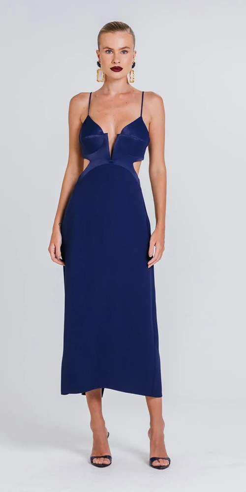O nosso VESTIDO ANDRESSA vai trazer o charme minimalista para a produção! Feito no fluido crepe legere, vem numa modelagem acinturada, de saia reta midi com uma fenda poderosa na parte de trás. Já na parte de cima, temos um top com recorte e nó no centro numa segunda cor e alças finas. A escolha certa para um evento ao entardecer!